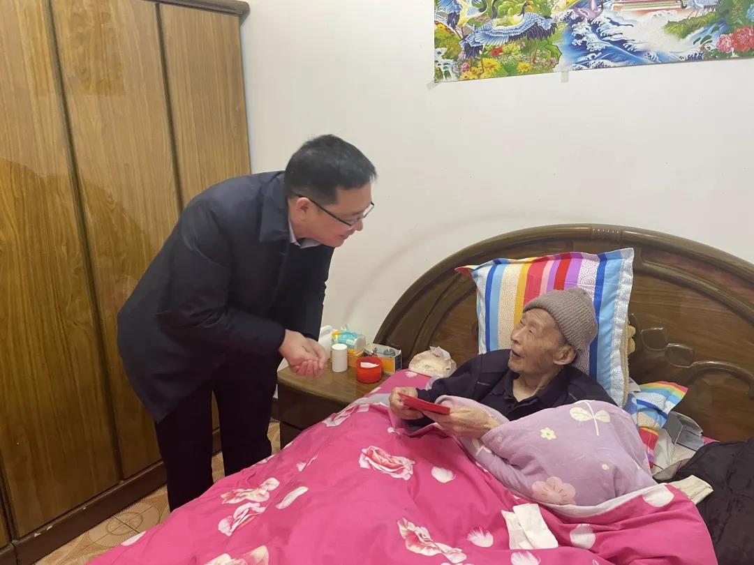 鄧西鋒看望了劉金保老人,并與及其家人親切交談,詳細詢問劉老的身體狀況,向他們致以新春的祝福。