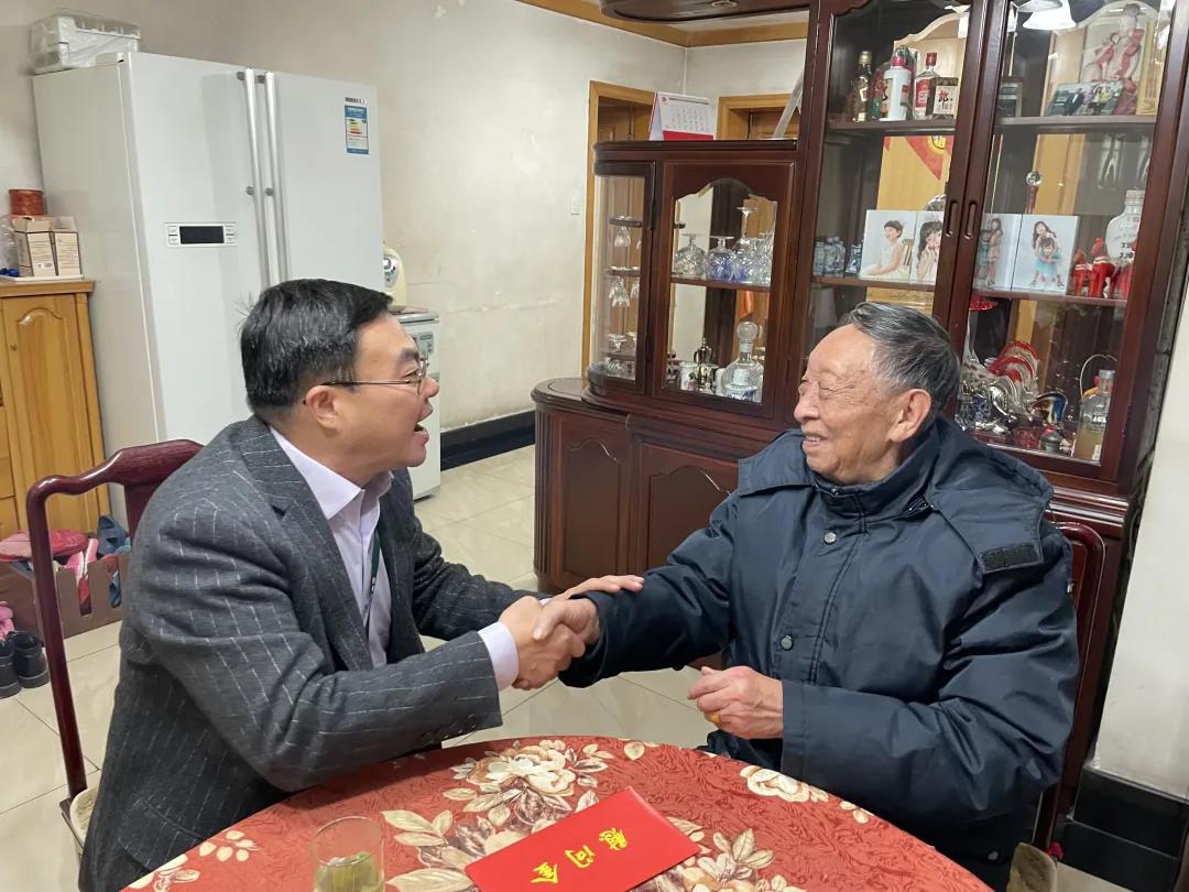 蔣延強與陳憲文老人一起親切交談,關切詢問他的生活、健康情況,祝愿陳老身體健康,并表示公司將繼續(xù)用心用情扎實做好老干部工作。