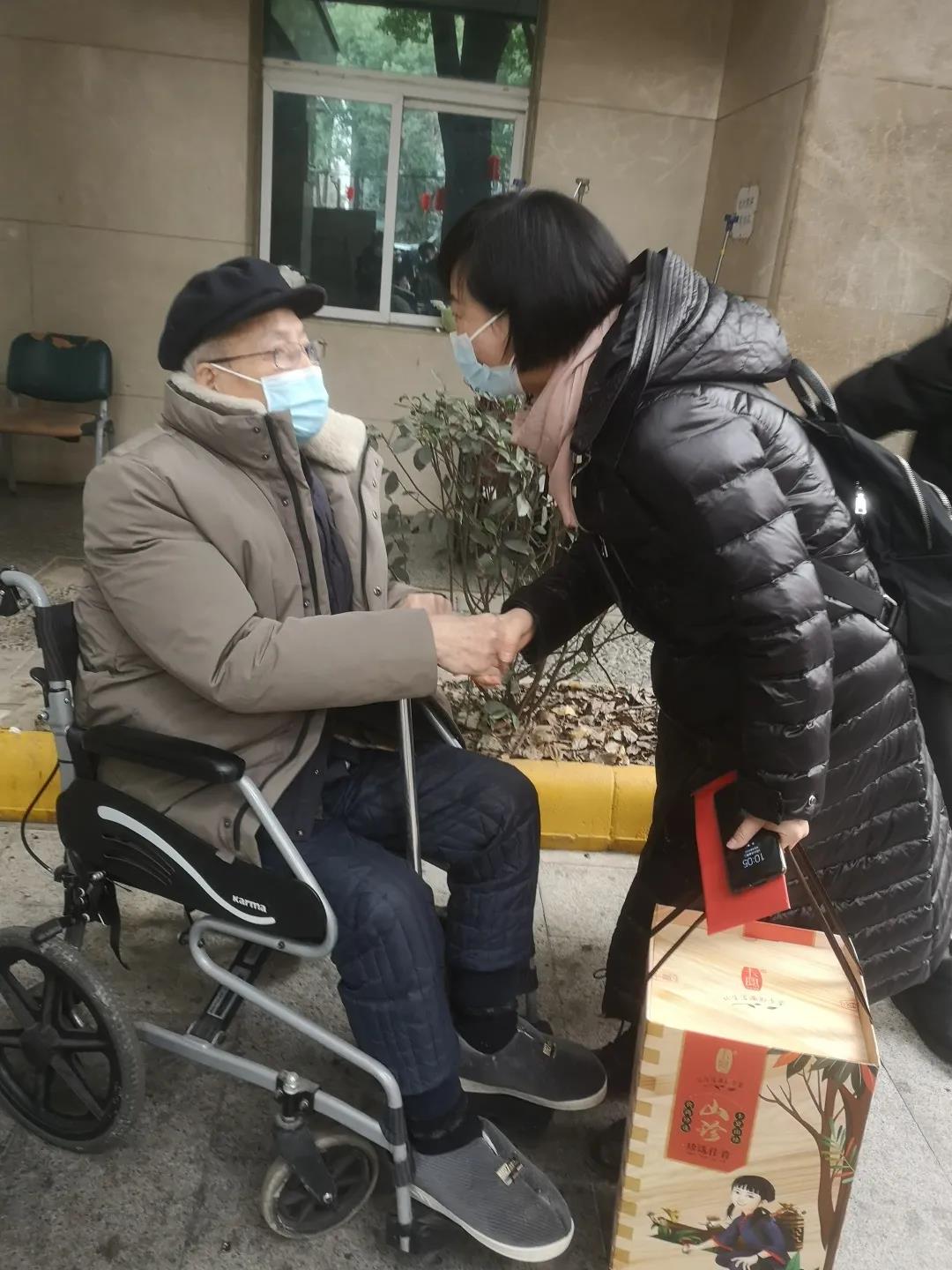 李春梅與耿慶超老人在四川省人民醫(yī)院庭院里拉家常、問冷暖,仔細詢問老人的身體狀況和家庭情況,并祝愿耿老度過一個歡樂祥和的新春佳節(jié)。