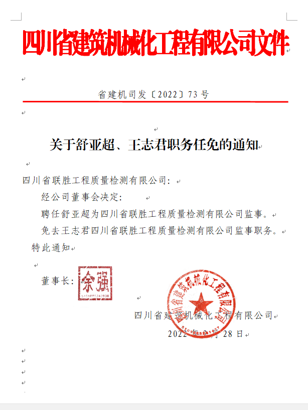 關(guān)于舒亞超、王志君職務(wù)任免的通知