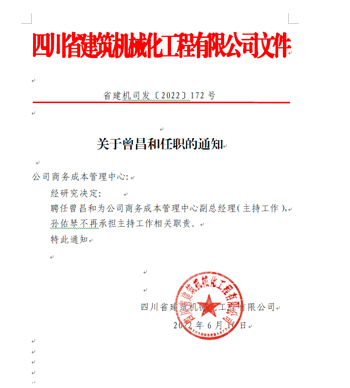 關于曾昌和任職的通知