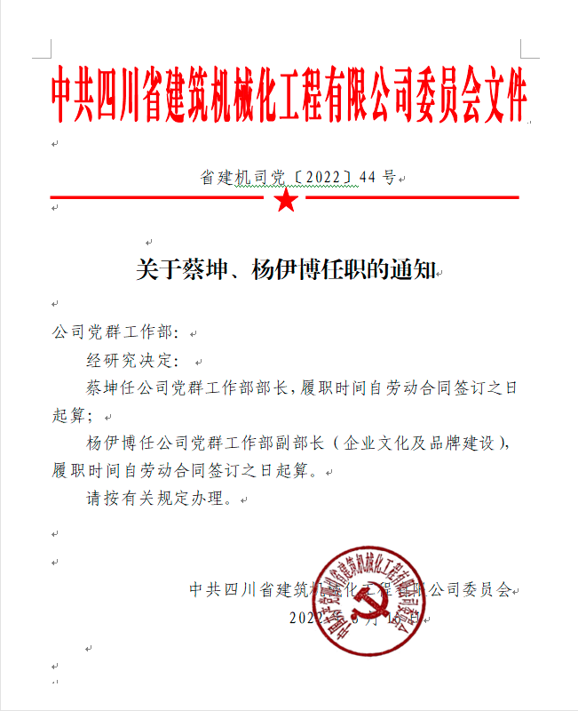 關于蔡坤、楊伊博任職的通知